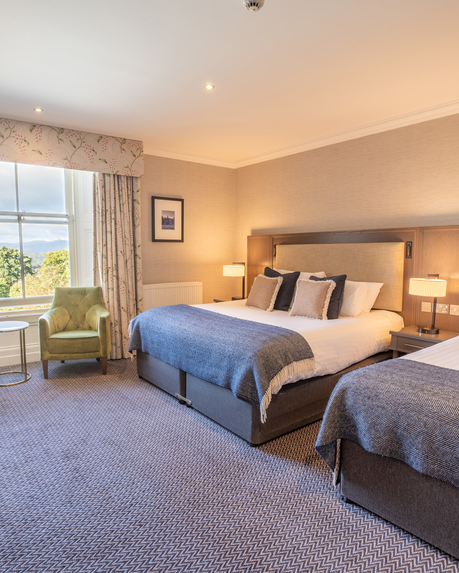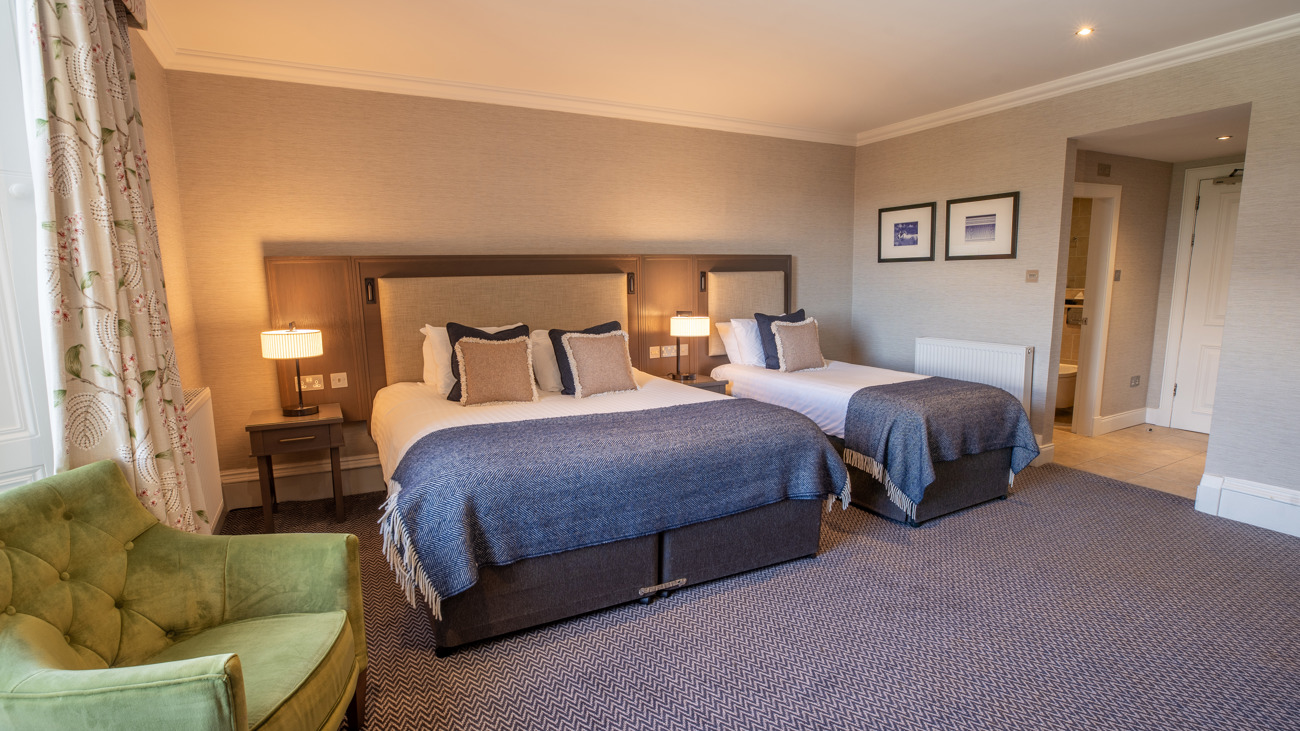 Our Feature Family Rooms offer a spacious and beautifully crafted retreat, thoughtfully designed to welcome families in comfort. Each room has its own layout, character, and contemporary décor, creating a peaceful space to relax together. With upgraded bedding and a bathroom featuring a shower over the bath, these rooms give more space for the whole family to have an unforgettable break.